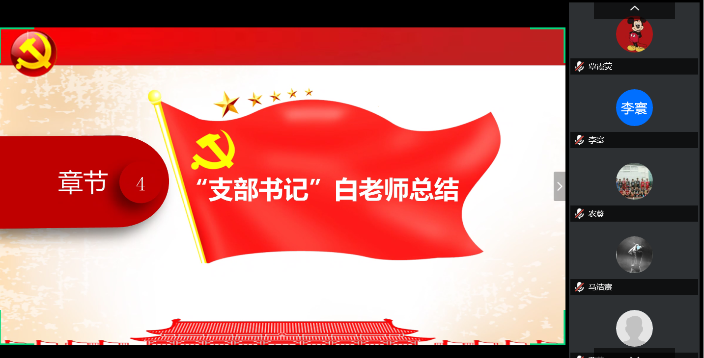 4月22日晚,物流学生党支部在腾讯会议平台召开了关于“学习习近平总书记关于教育的重要论述、对广西工作的重要指示精神以及自治区党委十一届七次全会精神”为主题的党日活动,支部书记白宇航老师、支部党员、发展对象...