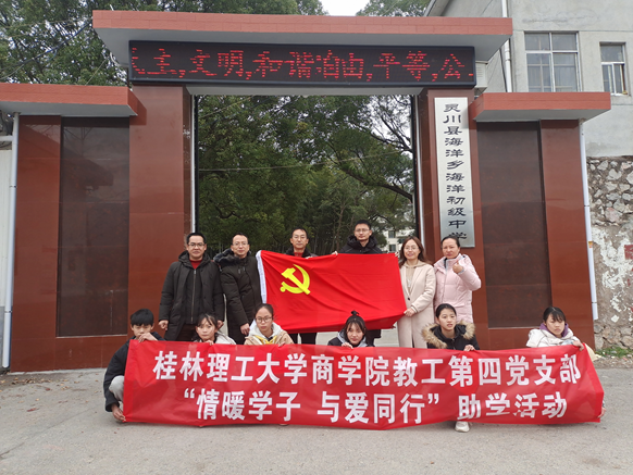 12月19日,商学院教工第四党支部在支部书记刘黔川同志带领下赴桂林市灵川县海洋乡初级中学开展了“情系学子,与爱同行”助学活动。捐助活动在海洋初级中学会议室举行,参加活动的有灵川县海洋乡党委李林霞书记、海洋...